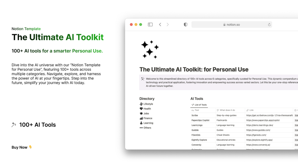 The Ultimate AI Toolkit: 100+ AI tools for a smarter Personal Use.